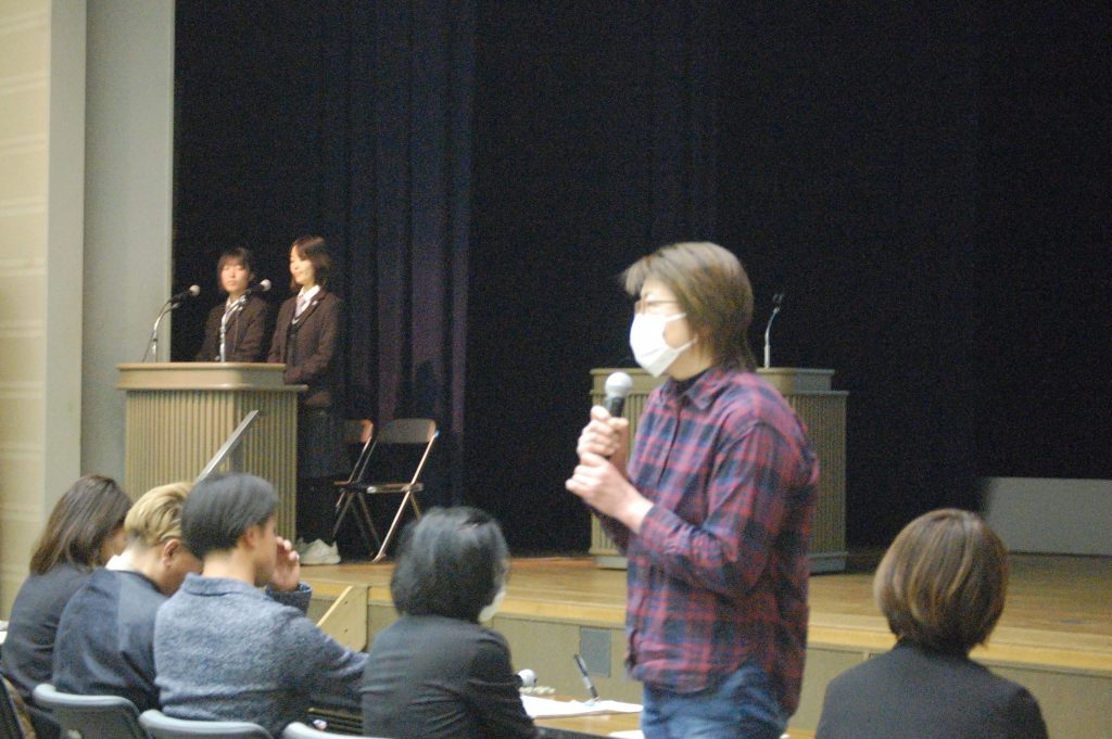 会場にはゲストとして、フィールドワークでお世話になった皆さんをお招きしました。各班の発表についてのコメントや、「失敗を恐れずに、今、挑戦してほしい」といったメッセージを生徒へお話しいただきました。保護者の方や関係者も参観され、会場は終始あたたかな雰囲気で各班の発表が進みました。