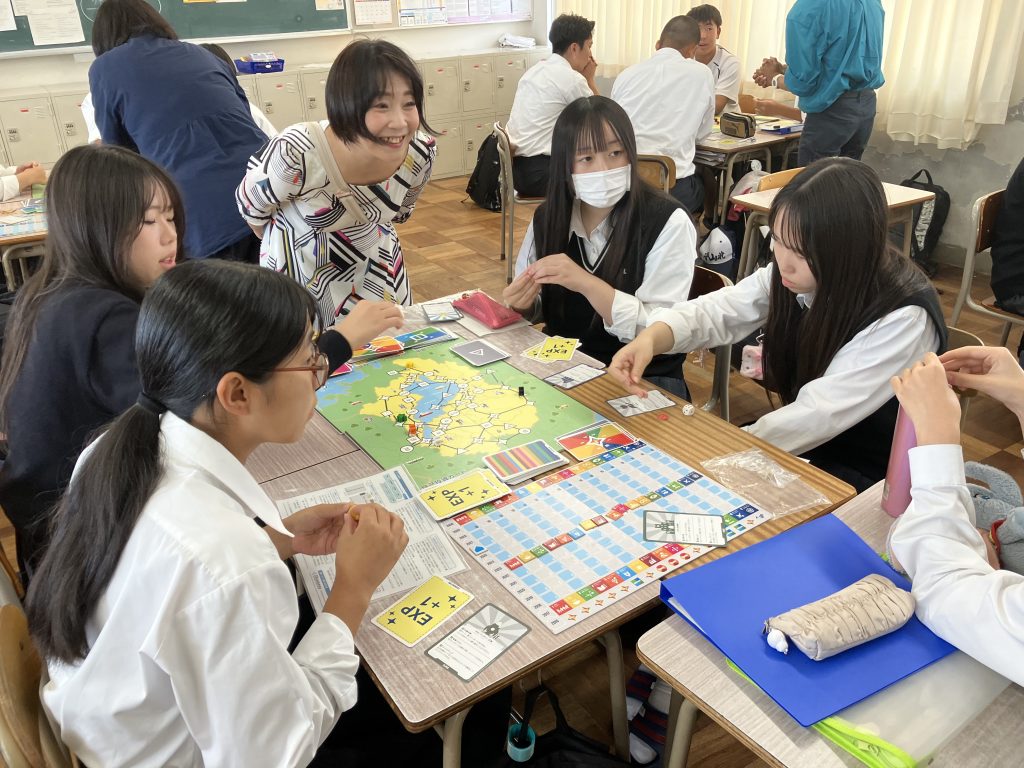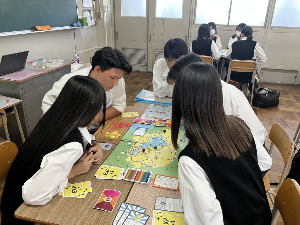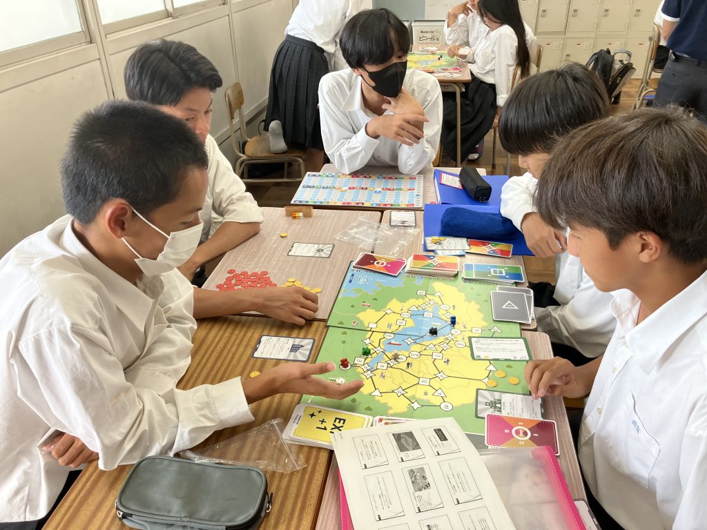 1年生のもりきた学(総合的な探究の時間)で、滋賀県に関するSDGsボードゲームを行いました。各教室にファシリテーターとして講師の方に来ていただき、ボードゲームについての説明を受けた後、実際にグループになってボードゲームに取り組みました。各グループによって進捗状況は様々で、スムーズに進める班もあれば、一枚一枚のカードを熟読しながら丁寧に進める班もありました。SDGsと聞くとどうしても自分達とは遠い存在のように感じてしまいますが、今回のような滋賀県を舞台としたボードゲームを通じて、実社会にある問題や課題を“自分事”として捉えられるよう、今後の学びにつなげていきたいと思います。今回ご協力をいただいた一般社団法人あもるぷらす島田様はじめ、ファシリテーターの方々ありがとうございました。