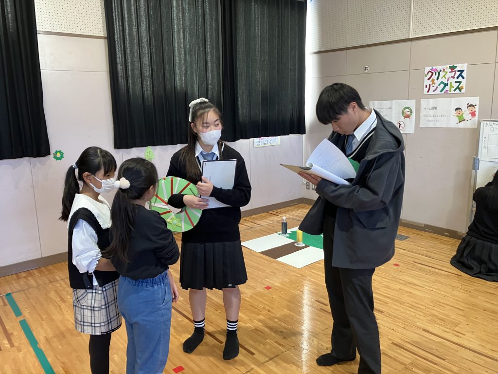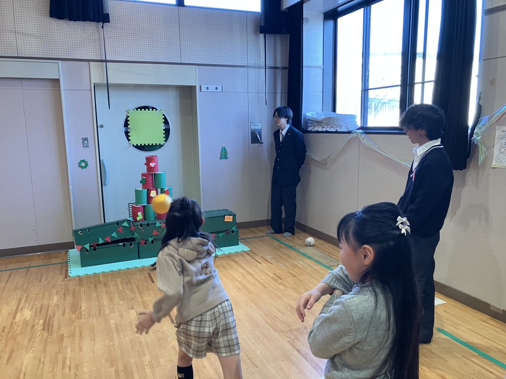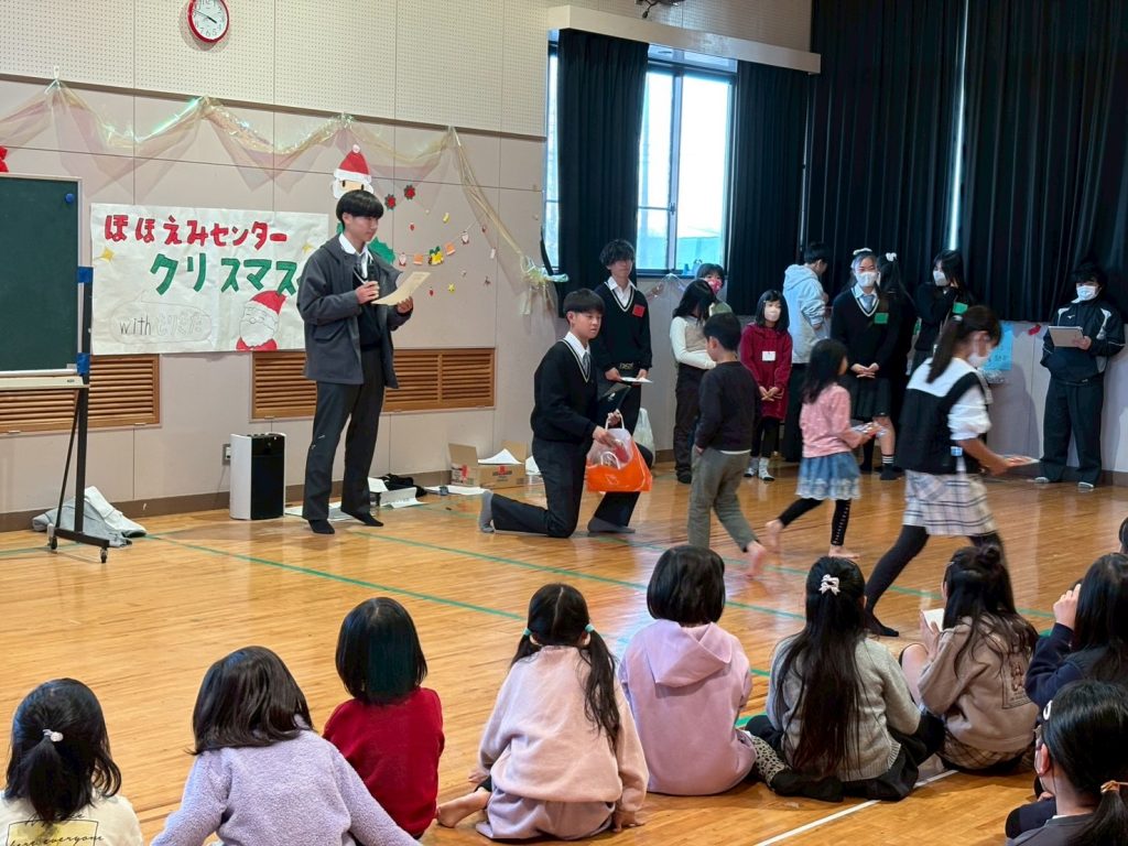 12月6日(土)14時〜守山市内の児童館ほほえみセンターのクリスマス会に、みらい共創科が参加しました。 当日はオープニングの司会進行から、マルバツゲーム、各グループで企画したコーナー遊び(缶倒し、リングトス、ストラックアウト、雪だるまづくり)、エンディングまでの運営をさせていただきました。9月から準備してきた自分たちが考えたさまざまなアイデアや遊びを、地元の園児、小学生たちが楽しんでくれた安堵感や達成感、またその中にあった新たな気づきや課題も見えた1日でした!普段あまり関わることのない異年齢の交流は、相手の立場に立って物事を考える、目線を合わせるというコミュニケーションの基礎基本を再確認する素晴らしい場でもありました。(高校生たちも目線を合わせながら試行錯誤してよく頑張ってくれました。)9月から、色々と関わっていただいたほほえみセンターの職員の皆様、本当にありがとうございました。