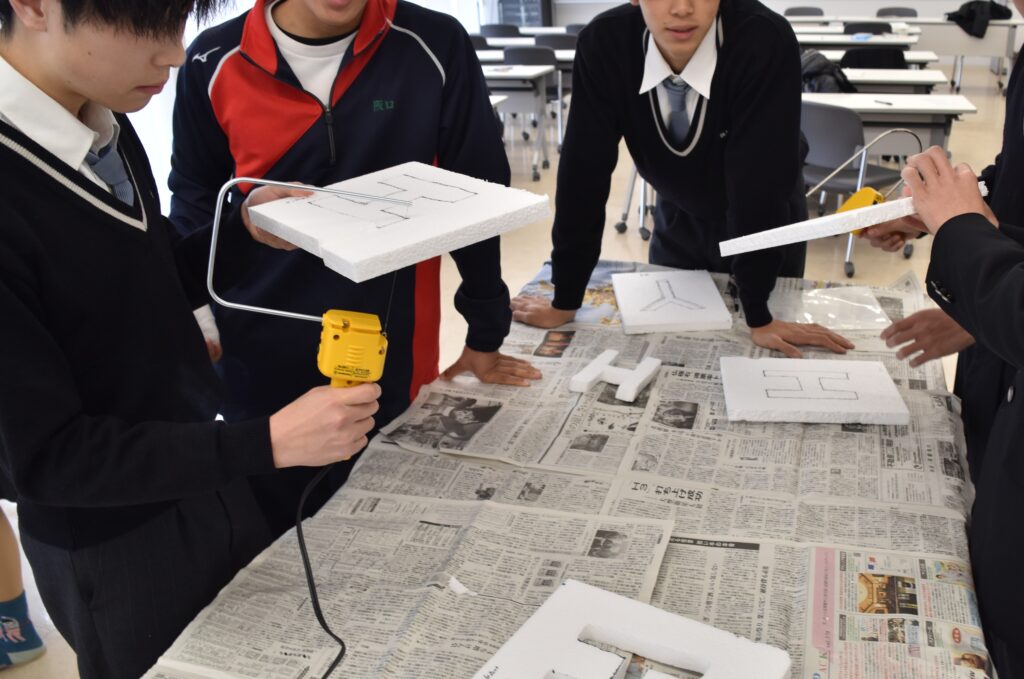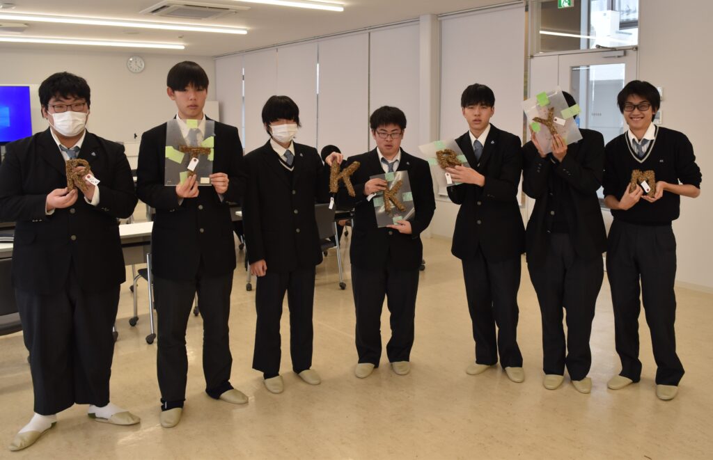 ■そして、一週間たった1月28日の授業では、前の週に作った型の中から、固まった文字を取りだしました。取り出した文字は今後、着色した板に貼り付けて仕上げます。最後に、環境政策課の中江さんから、この授業についてまとめの講義がありました。 3月には染織家さんとコラボして、ヨシから抽出した染液を使って、染色作品を作る予定です。