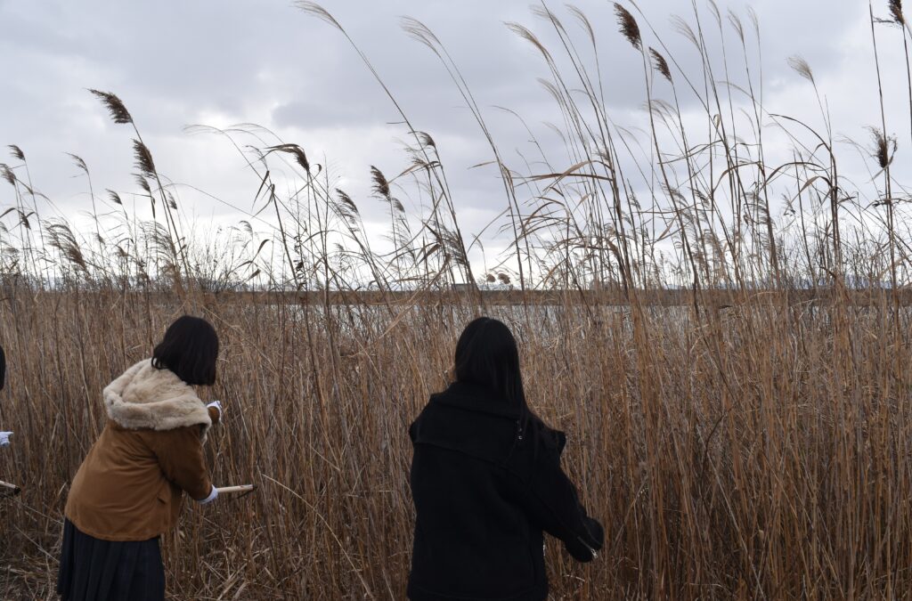 ・ヨシが保護されている理由を知った。水質浄化や生物多様性の保全などの役割もあるから、ヨシは大切に育てていくべきだと思った。ヨシを刈るのは大変だったけど、自分たちで刈ったヨシが自分の作品に変わっていくのがうれしかったし、楽しかった。