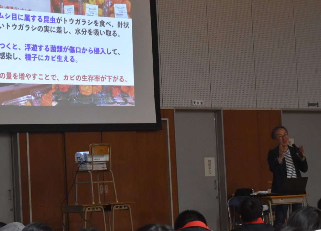 『今、なぜ探究か?このヤバい世界を進むための武器(視野)を持とう!』…刺激的なタイトルの講演が始まると、今この世の中で起こっていることと自分との関わりや、さまざまな“危うさ”に気づくかのように、お話しにじっと聞き入る生徒の姿がありました。スマホやAIが人や社会にどのような影響を持つのか、だから今こそ「探究」なのだと、様々な事例とともに教えてくださいました。